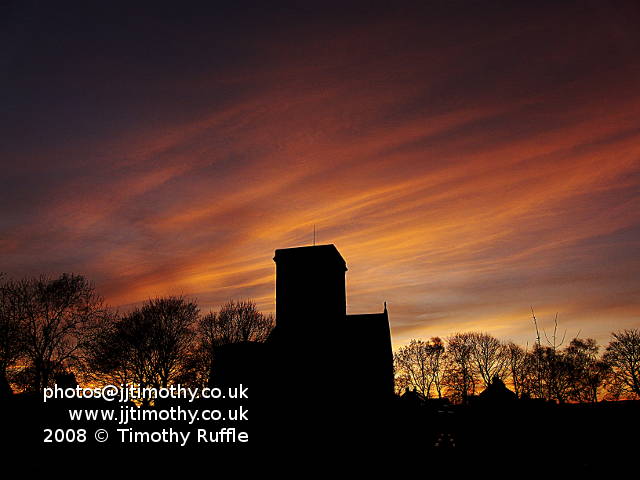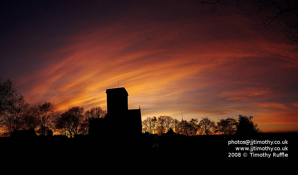 P1040325. The Church at sunset. I hadn't realized that Kirk Merrington was so close to Mordor.